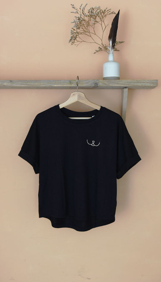 Comfy shirt dat luchtig en losjes zit; ideaal voor de warme zomerdagen. De diepzwarte kleur maakt het passend op elke outfit.