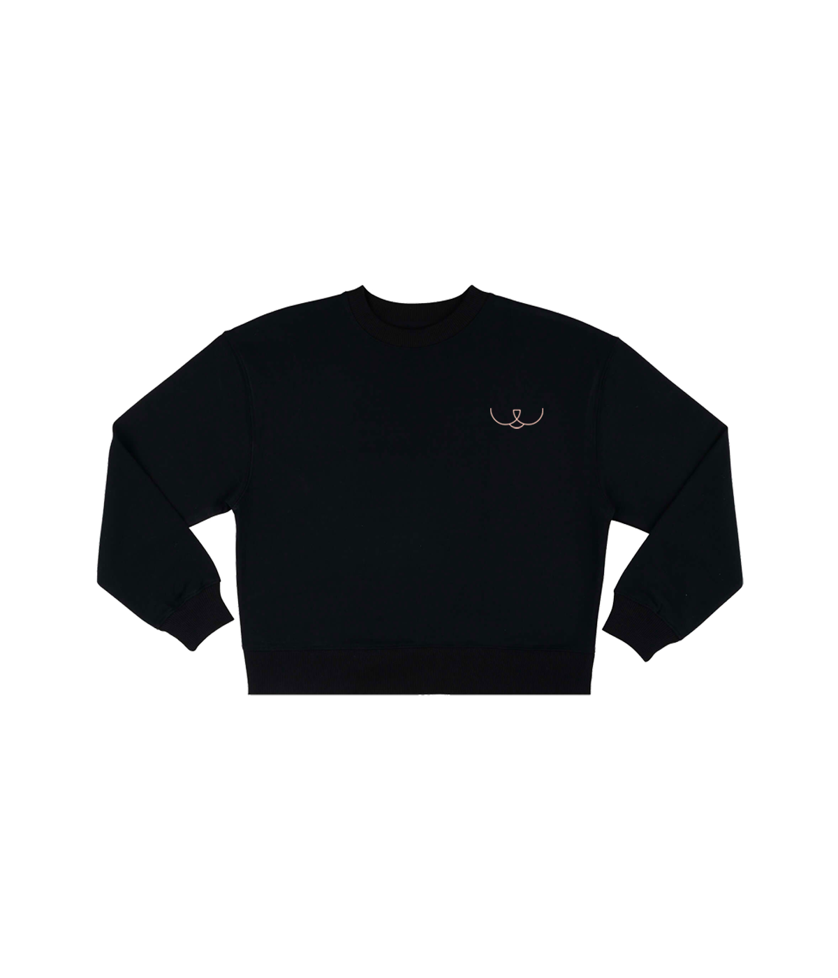Deze zachte damestrui valt korter en heeft een wijdere mouw dan de andere sweaters. De zwarte stof match je makkelijk overal mee. Gemaakt van 100% biologisch katoen.