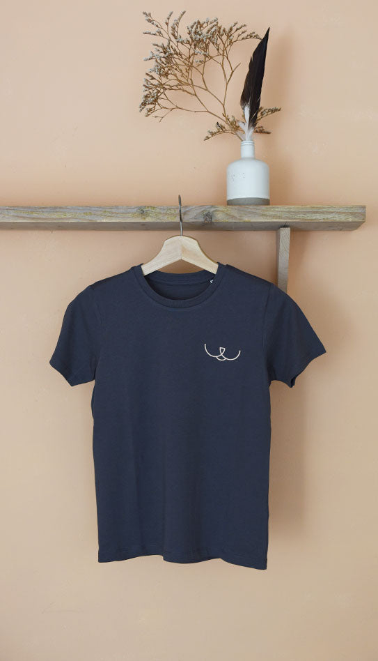 - Ingezette mouwen - Enkelvoudige jersey, 100% gesponnen en gekamd biologisch katoen - Ons model op de foto is 145cm lang en draagt maat 9-11 jr.