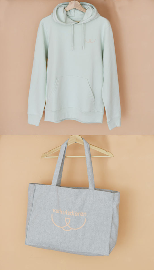 Zowel de hoodie als de shopper zijn duurzaam gemaakt.