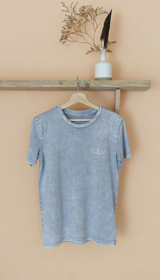 ALLEEN NOG XS BESCHIKBAAR - Casual T-shirt met unisex pasvorm. De speciale dye techniek maakt elk shirt uniek. Gelimiteerde uitgave dus op = op. 100% biologisch katoen. Vrouw op foto draagt een XS.