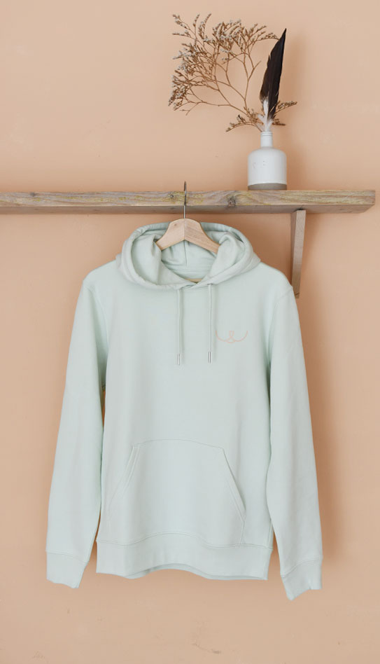 - Ingezette mouwen - Gevoerde capuchon - Rond, ton sur ton aantrekkoord - Verstevigingsband met visgraatpatroon in de hals - Kangoeroezak - Geborstelde molton, 85% gesponnen en gekamd biologisch katoen, 15% gerecycled polyester - Ons vrouwelijk model is 1.80cm en draagt maat S, het mannelijke model is 184, en draagt maat M.